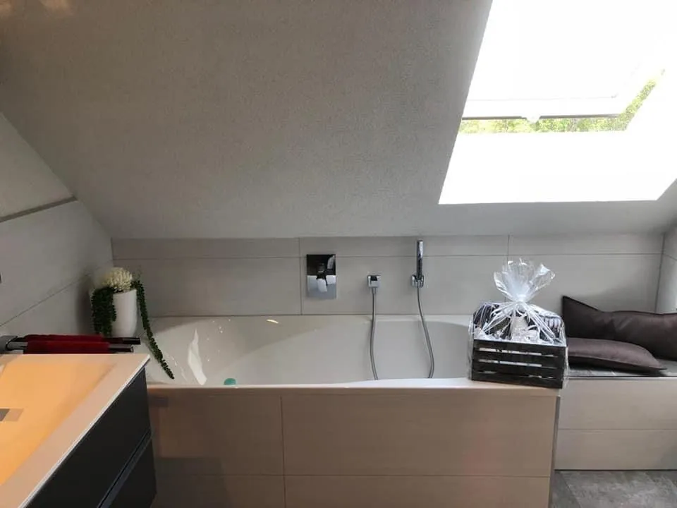 • Großzügiges Bad mit Designnische, Wand-WC & Doppelwaschtisch