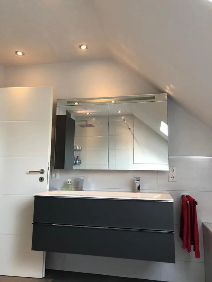 • Modernes Gäste-Bad mit Spiegelschrank & Holzplatte